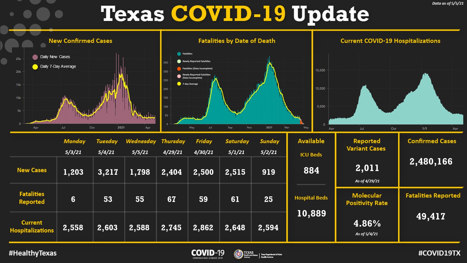 Infections hit a seven-month low even as slowdowns in the vaccination rate have spurred new strategies to make shots more accessible. Musser estimated that up to 80 of new COVID-19 cases in Houston Methodists network have been the UK variant peaking in April. As of 1200 pm May 8 2021 Dallas County Health and Human Services is reporting 178 additional positive cases of 2019 novel coronavirus COVID-19 in Dallas County 169 confirmed cases and 9 probable cases.