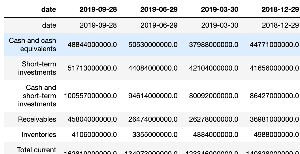 Pharmaceuticals have different Balance Sheet structures. To scrape Yahoo finance using Python we only need a couple of lines of codes as we will see below thanks to Pandas. Here is the code credit to Matt B.